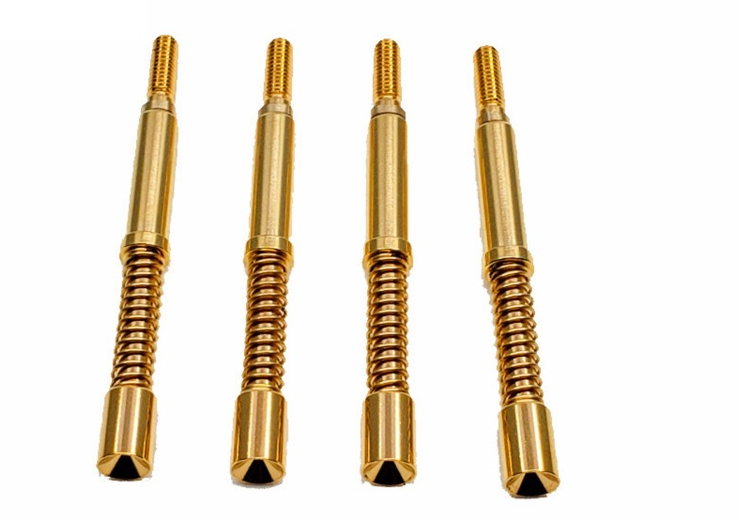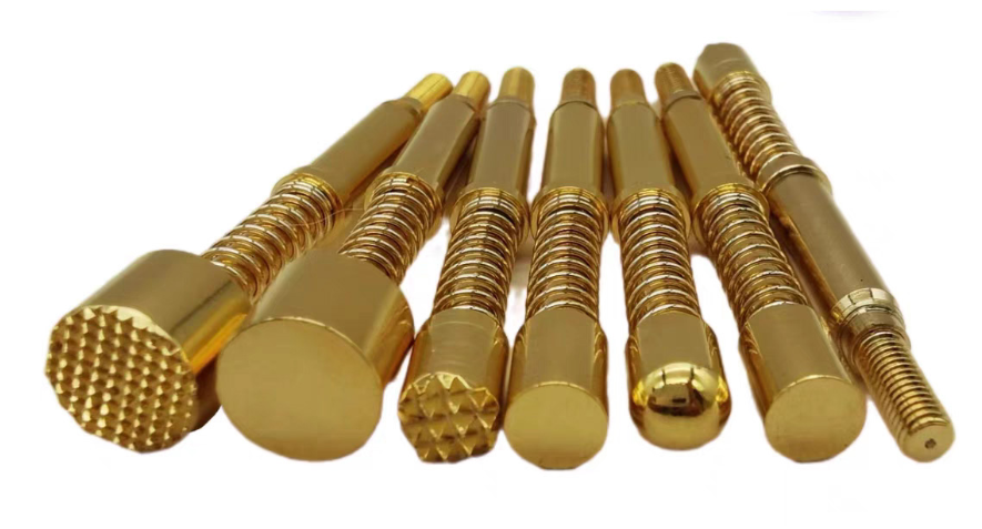①高導電性:這款探針拋棄了市面上常用黃銅或鐵棒作為針桿原材料和表面鍍銅或仿金工藝, 這款25A探針軸選用環保硬質磷銅鎳上鍍硬金:導電更穩定和耐磨。