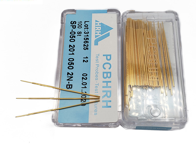 ICT 探針的類型豐富多樣,常見的有標(biāo)準(zhǔn)彈簧探針,適用于多數(shù)常規(guī)測試場景;E-TYPE? 探針具有較高預(yù)緊力,可穿透絕緣層,用于特殊環(huán)境下的測試。從尺寸上看,有不同直徑規(guī)格,滿足不同測試點間距和空間要求。材質(zhì)方面,針管、針桿、套管常選用磷銅、鈹銅等材料并進行鍍金、鍍銠處理,以提升導(dǎo)電性與抗腐蝕性。