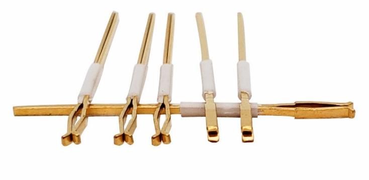夾片針通常采用塑膠材質(zhì)與金屬材質(zhì)的組合,其中塑膠部分可能包含尼龍料和ABS,而金屬部分則可能是鈦合金銅,這種復(fù)合材質(zhì)不僅提供了良好的電氣性能,還能在高溫環(huán)境下保持穩(wěn)定性和耐用性,夾片探針的頭部鍍金為2U金,其他則為1U金,夾片針的耐高溫為150度-160度