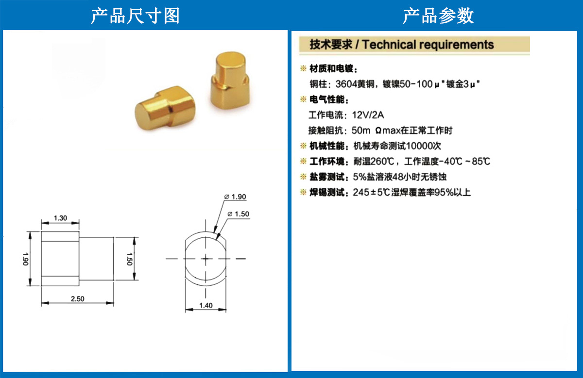 產品型號:1.9*2.5側焊銅柱