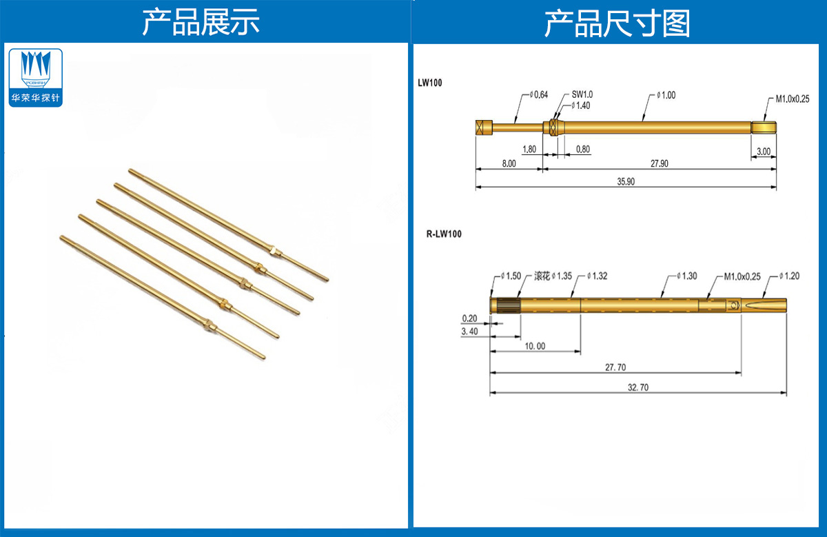 產品簡介:LW100線束探針、1.0mm測試針、總長35.90mm、彈簧針、頂針、探針