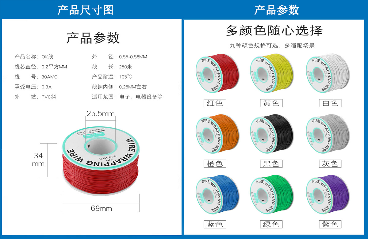 產品簡介:治具配件,測試配件,OK線,30#OK線 ,導線單芯銅線